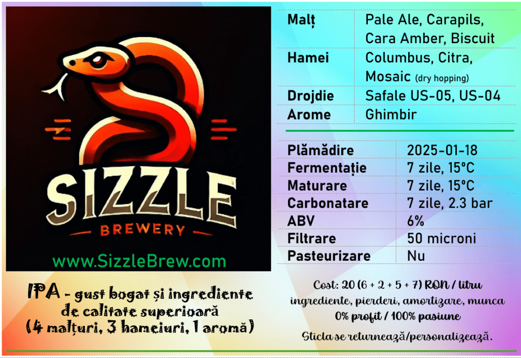Detaliile acestui “batch” se pot vedea in poza de mai jos, poza folosita si pe post de eticheta pentru sticle. Este o bere IPA (India Pale Ale) , nu este bere tip Lager.