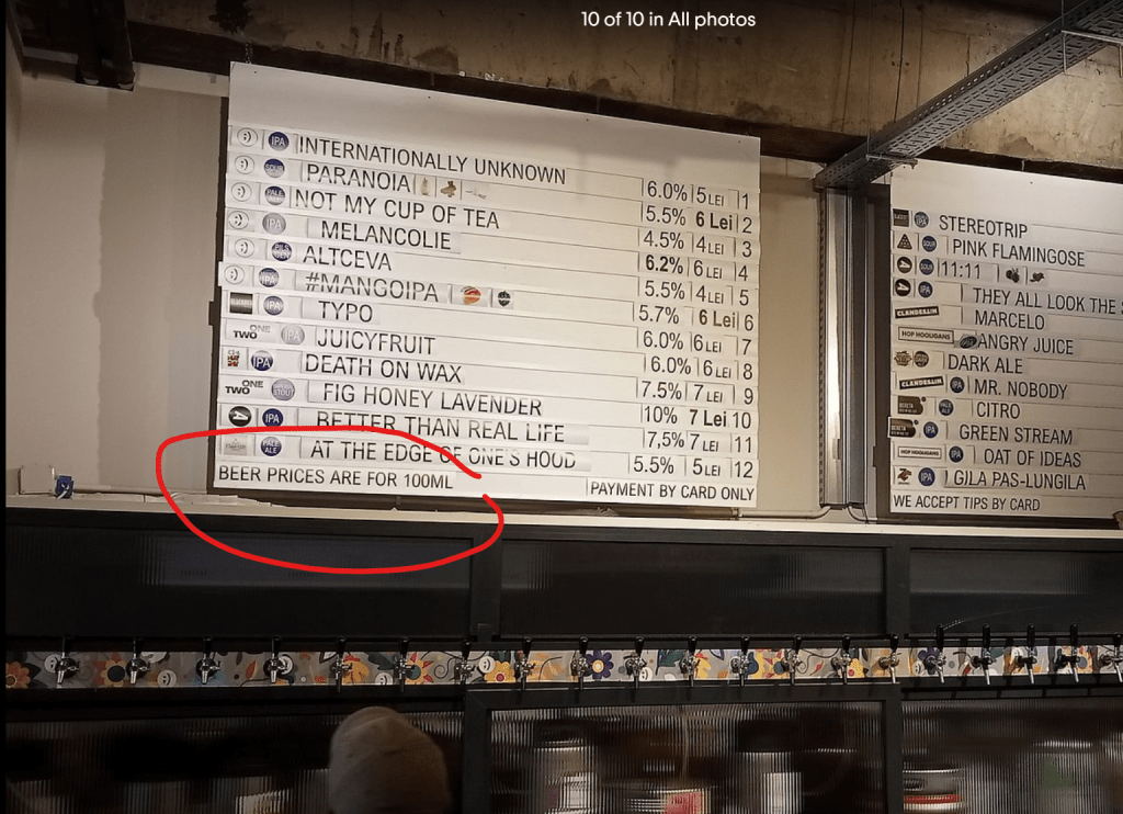 Sau, daca vreti ceva mai “IRONIC” (taproom), dati 90 ron / litru (…ironia sorții, celui care …doar platește)